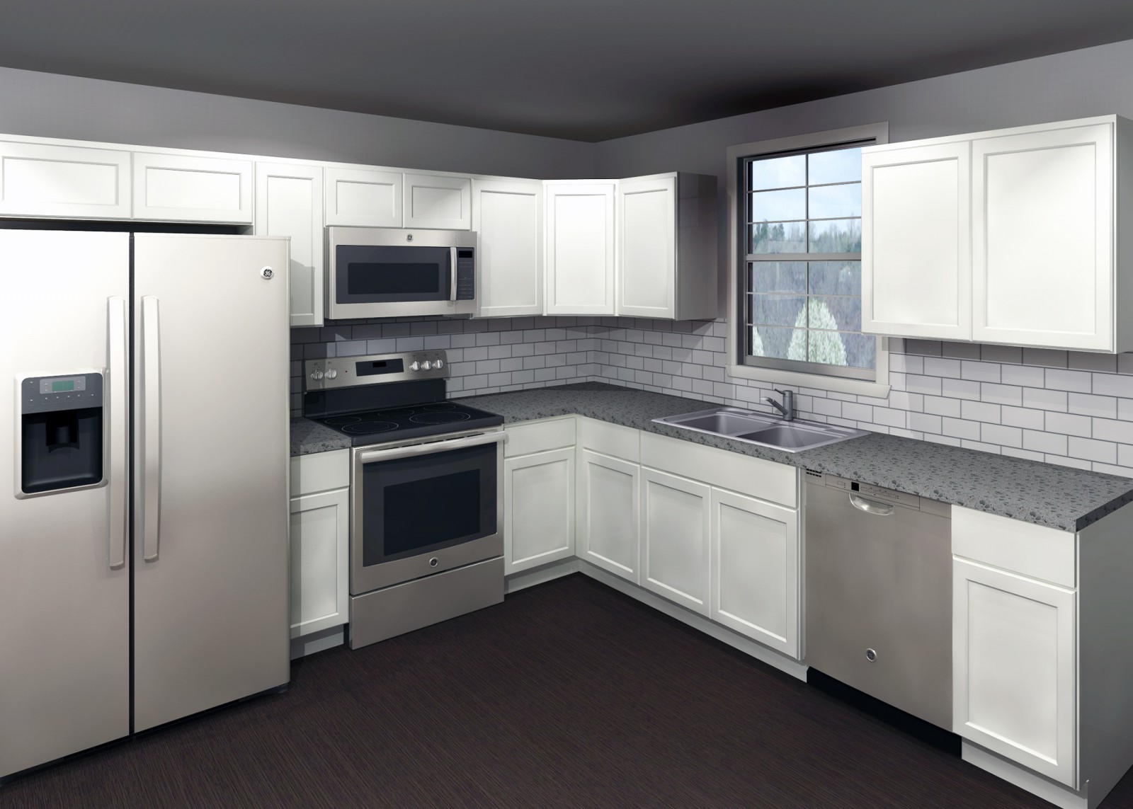 Pioneer Door, Paint Grade Maple with Arctic White Paint - Flat Panel Door Construction w/slab Drawer Front - Made to Order with Excellent Availability